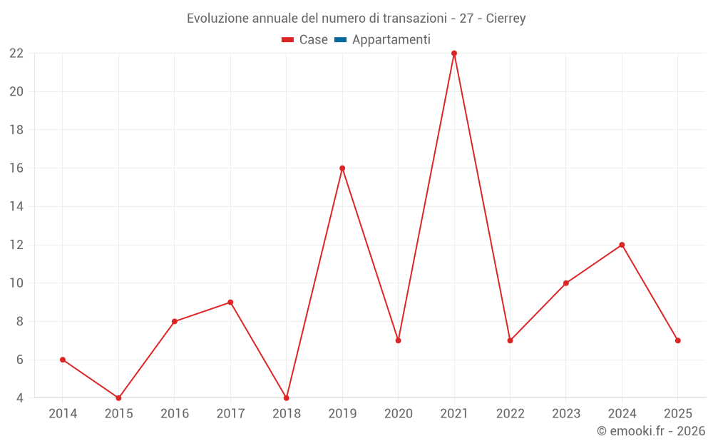 Il prezzo mediano sulle 26 transazioni di case degli ultimi 24 mesi nel comune di Cierrey era di 2 276 € al metro quadrato per un valore patrimoniale mediano di 219 500 €. In questo periodo il 60% delle transazioni era tra 1 977 e 2 552 € al metro quadrato (dal 2° all'8° decile).