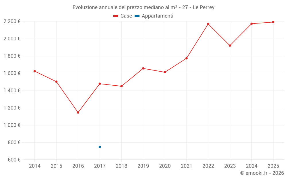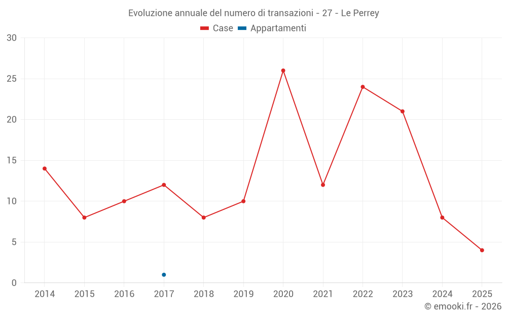 Il prezzo mediano sulle 22 transazioni di case degli ultimi 24 mesi nel comune di Le Perrey era di 1 989 € al metro quadrato per un valore patrimoniale mediano di 183 950 €. In questo periodo il 60% delle transazioni era tra 1 274 e 2 380 € al metro quadrato (dal 2° all'8° decile).