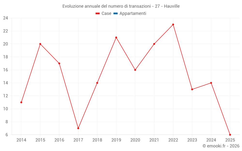 Il prezzo mediano sulle 27 transazioni di case degli ultimi 24 mesi nel comune di Hauville era di 2 113 € al metro quadrato per un valore patrimoniale mediano di 202 000 €. In questo periodo il 60% delle transazioni era tra 1 796 e 2 490 € al metro quadrato (dal 2° all'8° decile).