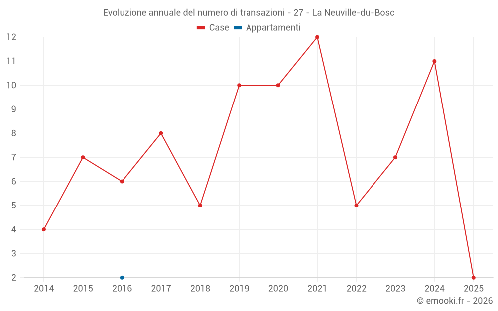 Il prezzo mediano sulle 15 transazioni di case degli ultimi 24 mesi nel comune di La Neuville-du-Bosc era di 1 800 € al metro quadrato per un valore patrimoniale mediano di 160 000 €. In questo periodo il 60% delle transazioni era tra 1 198 e 2 246 € al metro quadrato (dal 2° all'8° decile).