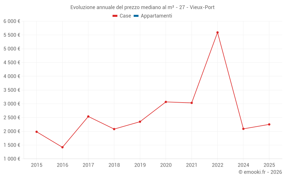 Evoluzione annuale del prezzo mediano al m²