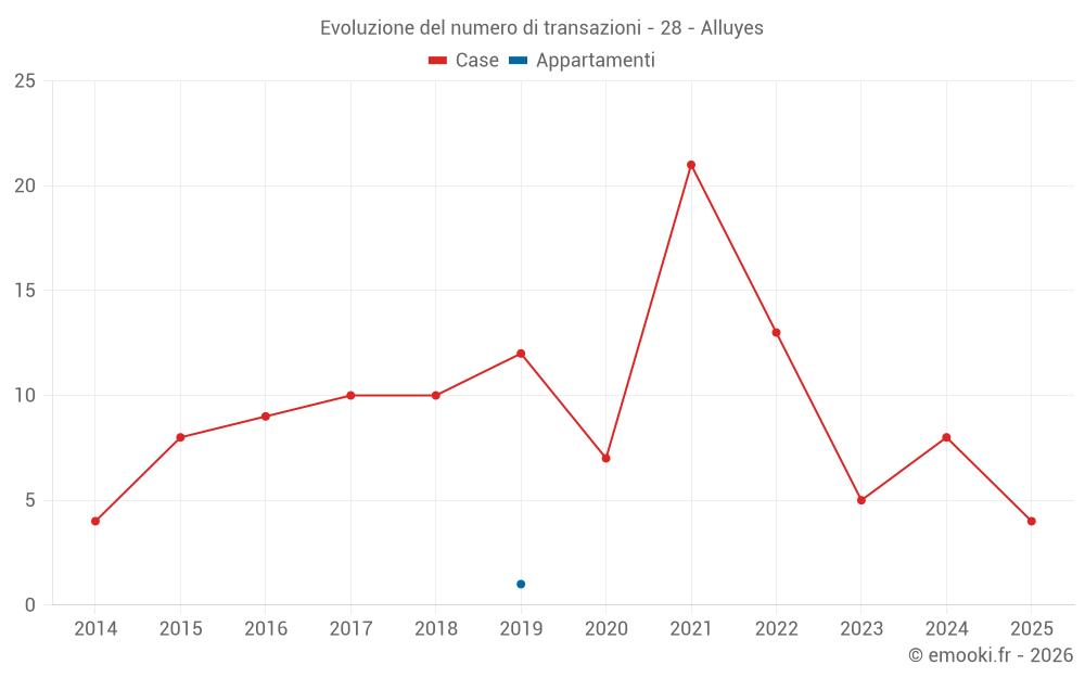 Attenzione, ultimo anno incompleto. Le proiezioni sono effettuate in base alle proporzioni tra semestri dell'anno precedente a livello dipartimentale/nazionale e per tipo di proprietà .