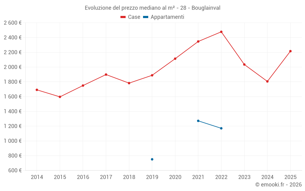 Evoluzione del prezzo mediano al m² degli appartamenti