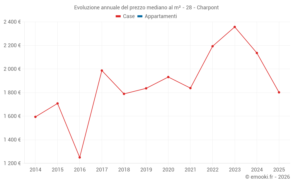 Evoluzione del prezzo mediano al m² degli appartamenti