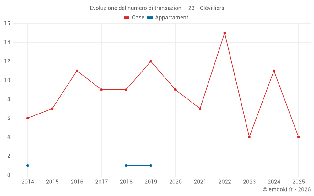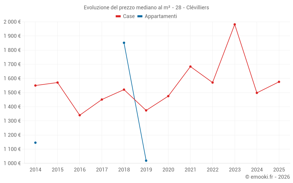 Il prezzo mediano sulle 15 transazioni di case degli ultimi 24 mesi nel comune di Clévilliers era di 1 498 € al metro quadrato per un valore patrimoniale mediano di 181 730 €. In questo periodo il 60% delle transazioni era tra 1 250 e 2 096 € al metro quadrato (dal 2° all'8° decile).