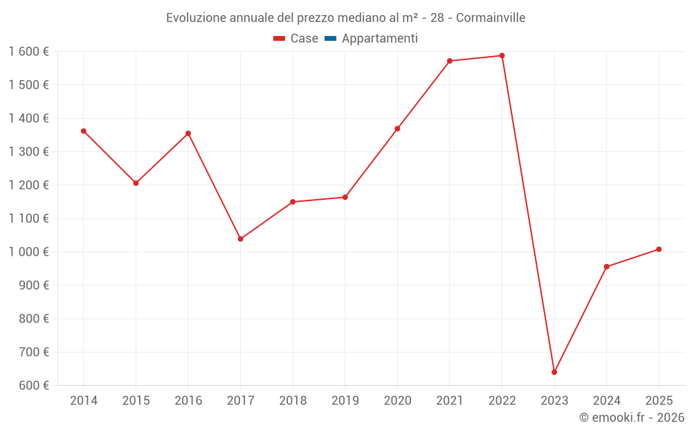 Il prezzo al m² delle case è aumentato del 5.4% da 1 anno, ma è diminuito del 37% in 3 anni.