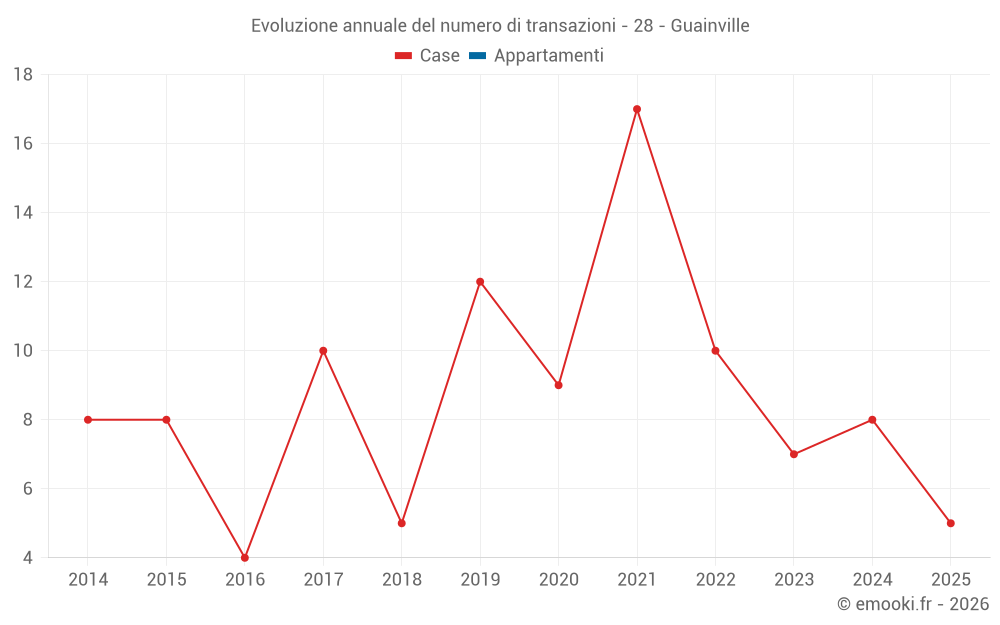 Il prezzo mediano sulle 16 transazioni di case degli ultimi 24 mesi nel comune di Guainville era di 2 067 € al metro quadrato per un valore patrimoniale mediano di 257 000 €. In questo periodo il 60% delle transazioni era tra 1 724 e 2 648 € al metro quadrato (dal 2° all'8° decile).