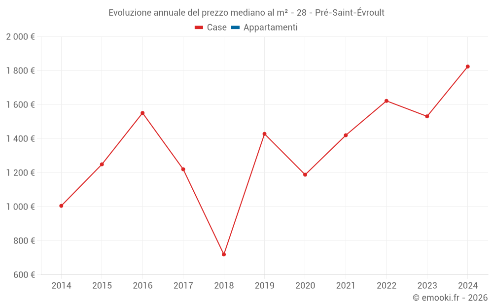 Evoluzione del prezzo mediano al m² degli appartamenti