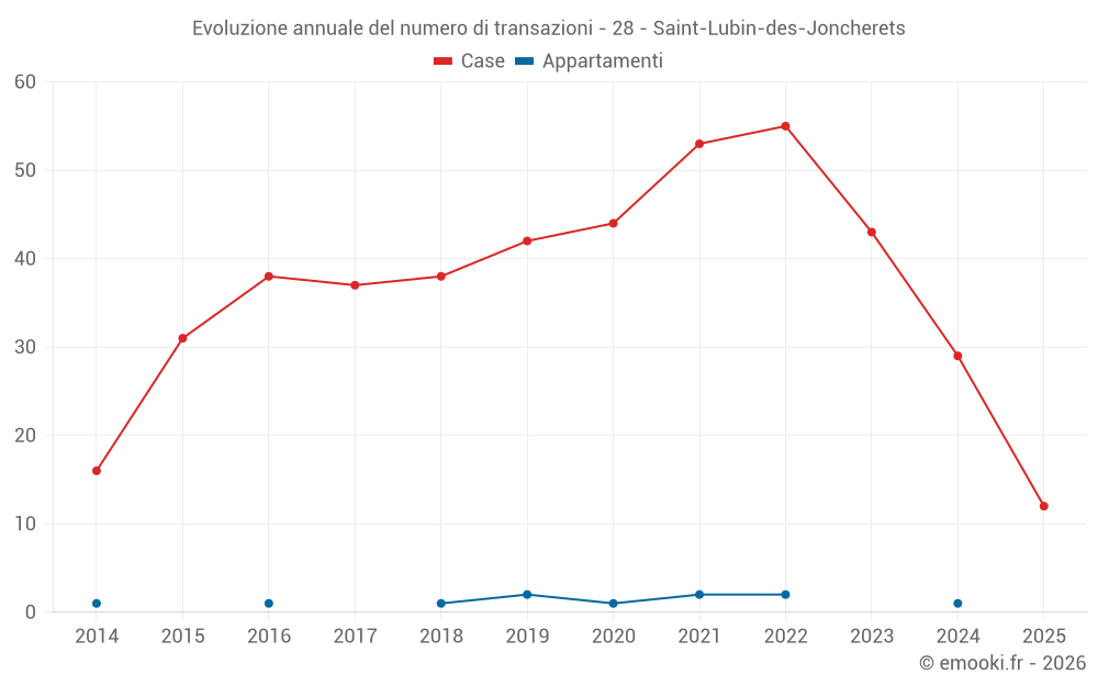 Il prezzo mediano sulle 28 transazioni di case degli ultimi 12 mesi nel comune di Saint-Lubin-des-Joncherets era di 1 708 € al metro quadrato per un valore patrimoniale mediano di 153 750 €. In questo periodo il 60% delle transazioni era tra 1 224 e 2 150 € al metro quadrato (dal 2° all'8° decile).