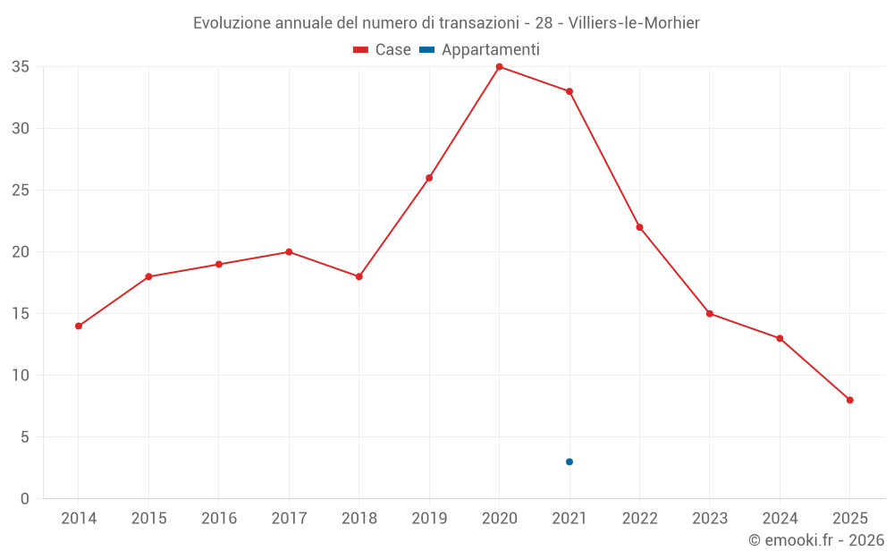 Il prezzo mediano sulle 25 transazioni di case degli ultimi 24 mesi nel comune di Villiers-le-Morhier era di 2 315 € al metro quadrato per un valore patrimoniale mediano di 215 000 €. In questo periodo il 60% delle transazioni era tra 1 689 e 2 691 € al metro quadrato (dal 2° all'8° decile).