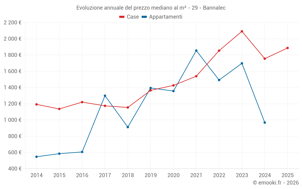 Il prezzo mediano sulle 21 transazioni di case degli ultimi 6 mesi nel comune di Bannalec era di 1 887 € al metro quadrato per un valore patrimoniale mediano di 162 750 €. In questo periodo il 60% delle transazioni era tra 1 171 e 2 615 € al metro quadrato (dal 2° all'8° decile).