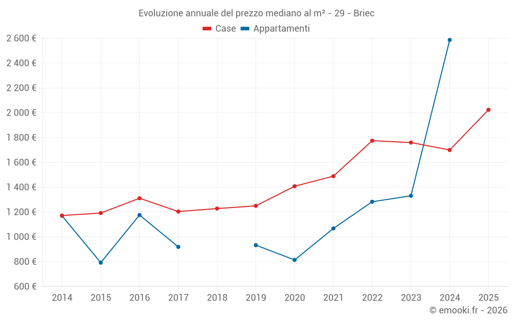 Qual è il prezzo al m2 delle case in Briec?