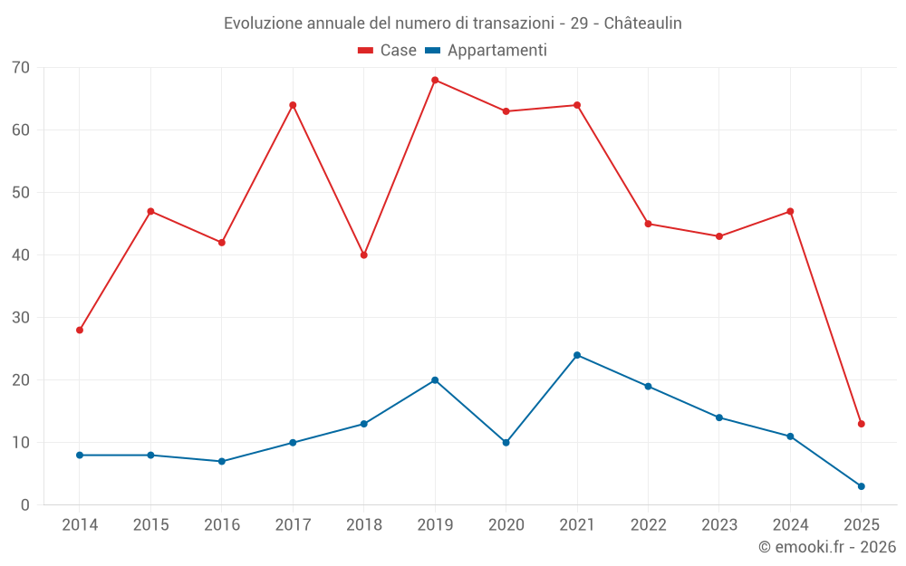 Il prezzo mediano sulle 19 transazioni di appartamenti degli ultimi 24 mesi nel comune di Châteaulin era di 1 283 € al metro quadrato per un valore patrimoniale mediano di 80 000 €. In questo periodo il 60% delle transazioni era tra 1 034 e 1 587 € al metro quadrato (dal 2° all'8° decile).