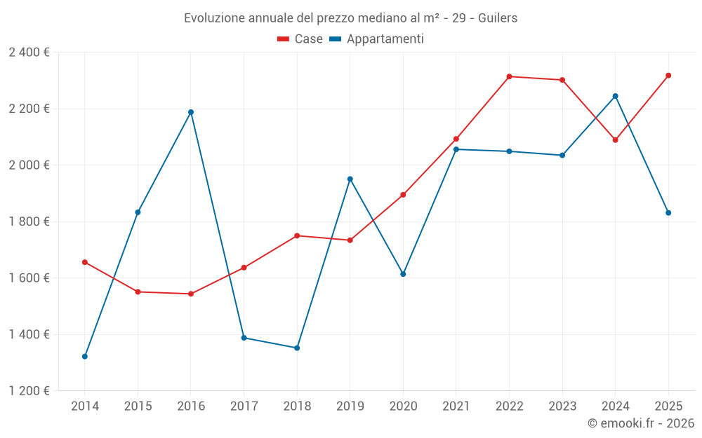 Qual è il prezzo al m2 delle case in Guilers?