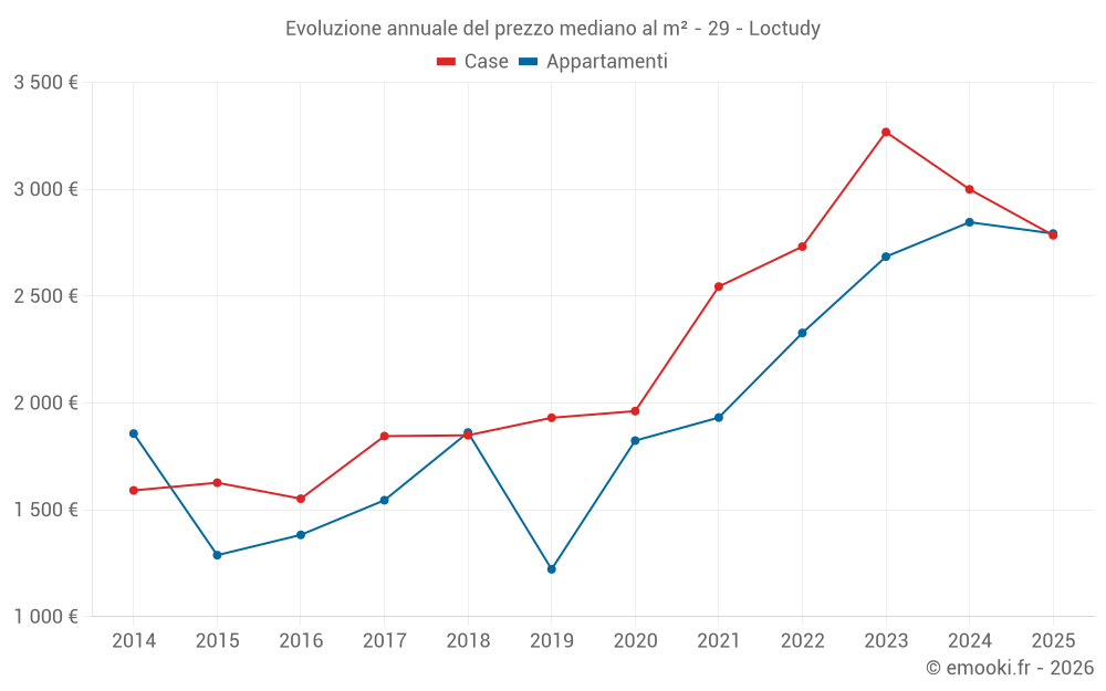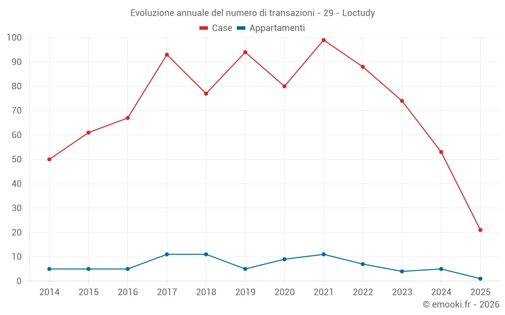 Il prezzo mediano sulle 21 transazioni di case degli ultimi 6 mesi nel comune di Loctudy era di 2 785 € al metro quadrato per un valore patrimoniale mediano di 300 000 €. In questo periodo il 60% delle transazioni era tra 1 691 e 4 311 € al metro quadrato (dal 2° all'8° decile).