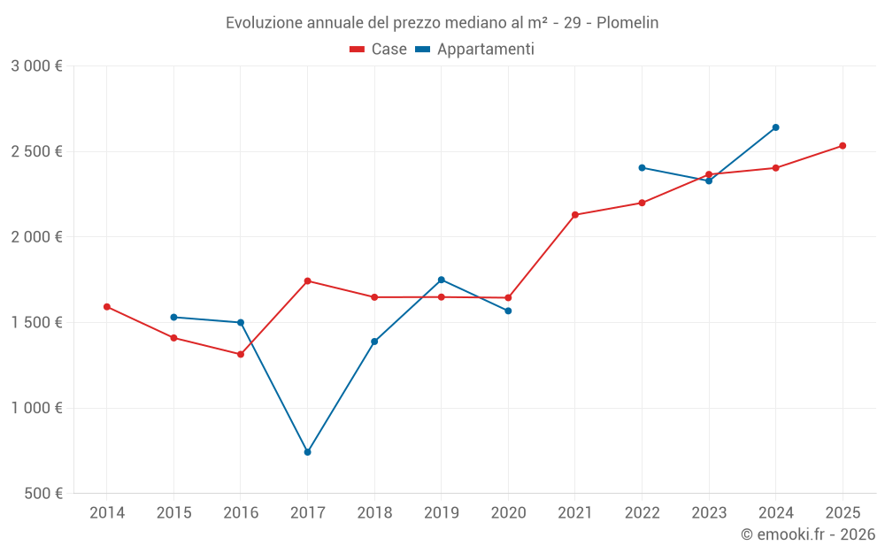 Il prezzo mediano sulle 28 transazioni di case degli ultimi 12 mesi nel comune di Plomelin era di 2 534 € al metro quadrato per un valore patrimoniale mediano di 276 725 €. In questo periodo il 60% delle transazioni era tra 2 162 e 2 971 € al metro quadrato (dal 2° all'8° decile).