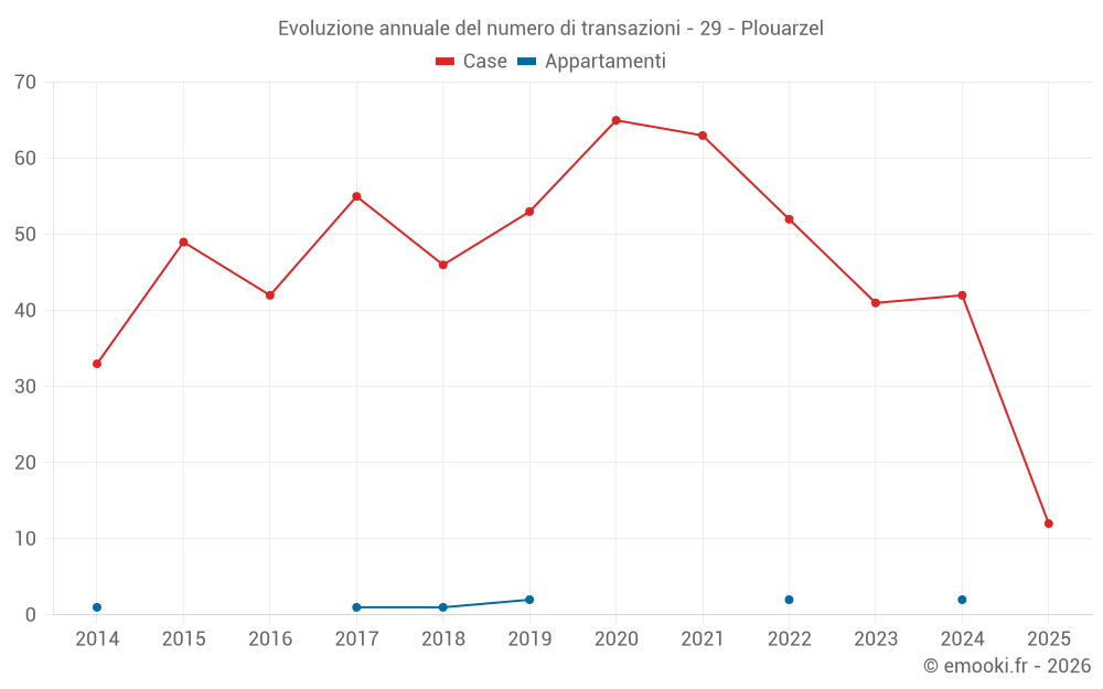 Il prezzo mediano sulle 46 transazioni di case degli ultimi 12 mesi nel comune di Plouarzel era di 2 497 € al metro quadrato per un valore patrimoniale mediano di 238 500 €. In questo periodo il 60% delle transazioni era tra 2 063 e 3 188 € al metro quadrato (dal 2° all'8° decile).