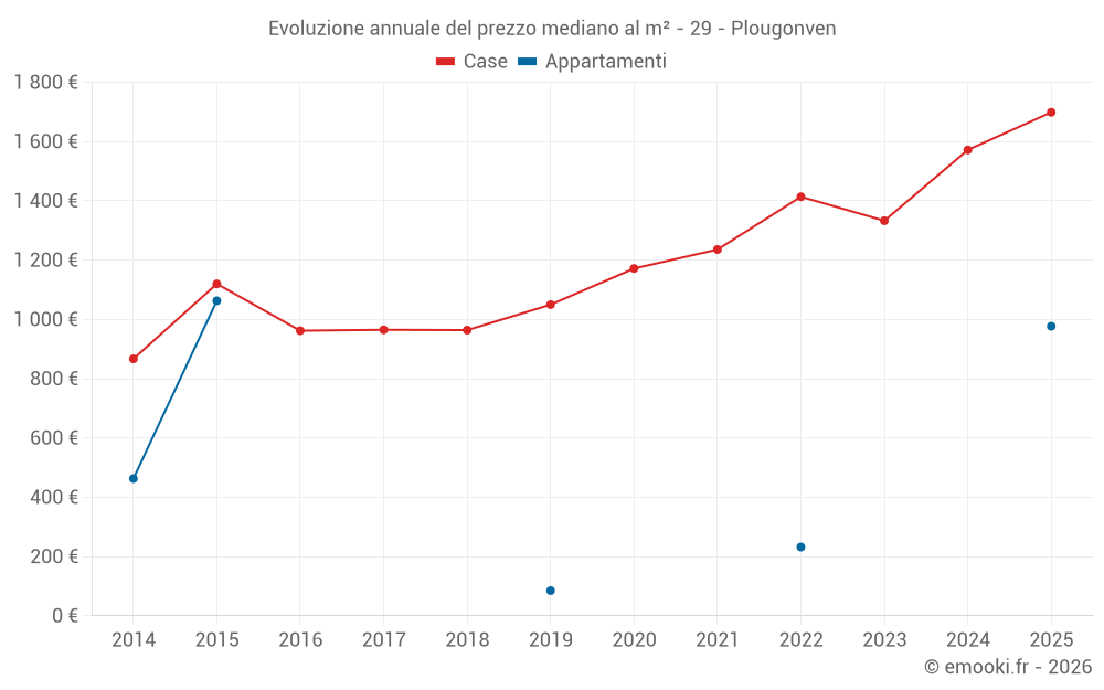 Il prezzo mediano sulle 21 transazioni di case degli ultimi 6 mesi nel comune di Plougonven era di 1 699 € al metro quadrato per un valore patrimoniale mediano di 137 000 €. In questo periodo il 60% delle transazioni era tra 1 314 e 1 881 € al metro quadrato (dal 2° all'8° decile).