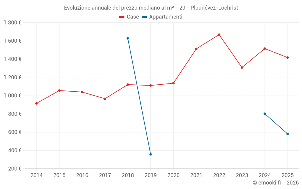 Il prezzo mediano sulle 25 transazioni di case degli ultimi 12 mesi nel comune di Plounévez-Lochrist era di 1 459 € al metro quadrato per un valore patrimoniale mediano di 132 600 €. In questo periodo il 60% delle transazioni era tra 939 e 2 075 € al metro quadrato (dal 2° all'8° decile).