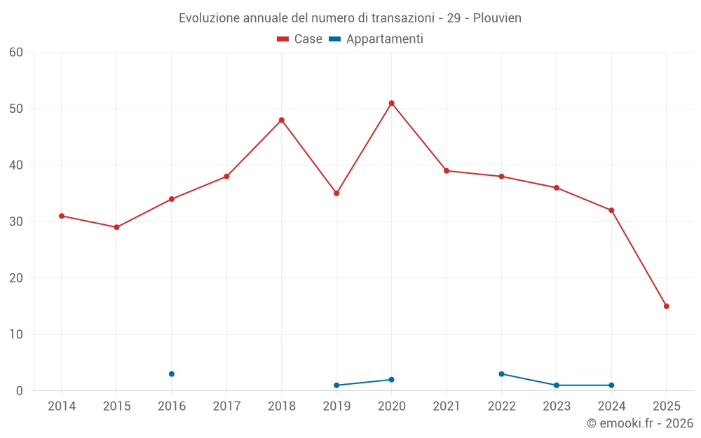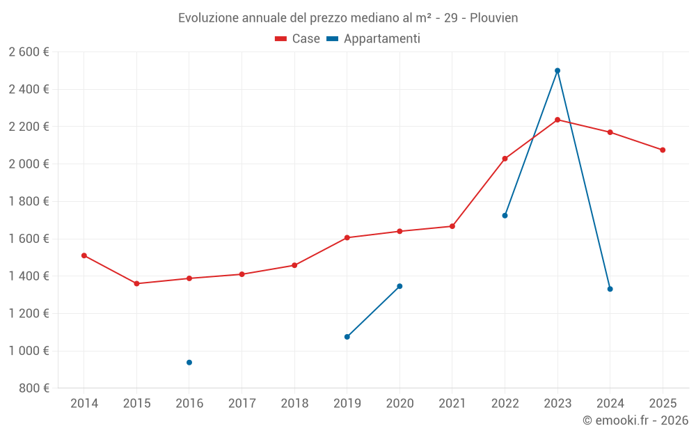 Il prezzo mediano sulle 41 transazioni di case degli ultimi 12 mesi nel comune di Plouvien era di 2 143 € al metro quadrato per un valore patrimoniale mediano di 200 000 €. In questo periodo il 60% delle transazioni era tra 1 518 e 2 564 € al metro quadrato (dal 2° all'8° decile).
