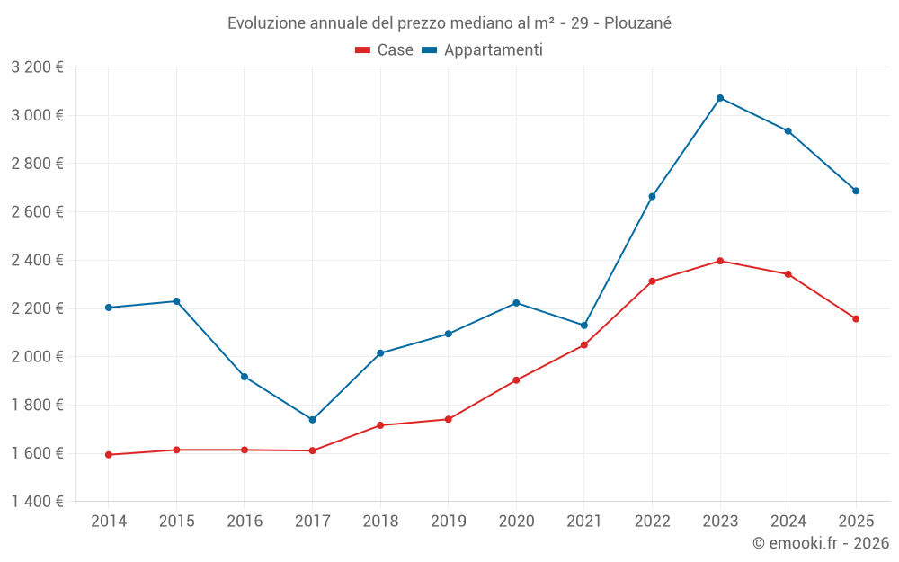 Il prezzo mediano sulle 15 transazioni di appartamenti degli ultimi 24 mesi nel comune di Plouzané era di 2 889 € al metro quadrato per un valore patrimoniale mediano di 150 000 €. In questo periodo il 60% delle transazioni era tra 2 628 e 2 976 € al metro quadrato (dal 2° all'8° decile).