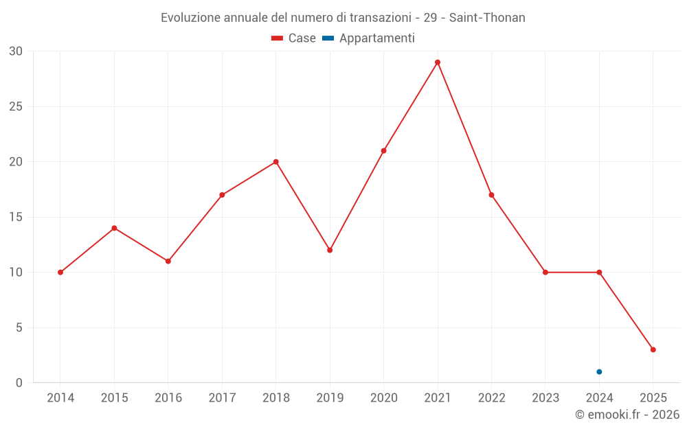 Il prezzo mediano sulle 17 transazioni di case degli ultimi 24 mesi nel comune di Saint-Thonan era di 2 459 € al metro quadrato per un valore patrimoniale mediano di 285 000 €. In questo periodo il 60% delle transazioni era tra 2 188 e 2 993 € al metro quadrato (dal 2° all'8° decile).