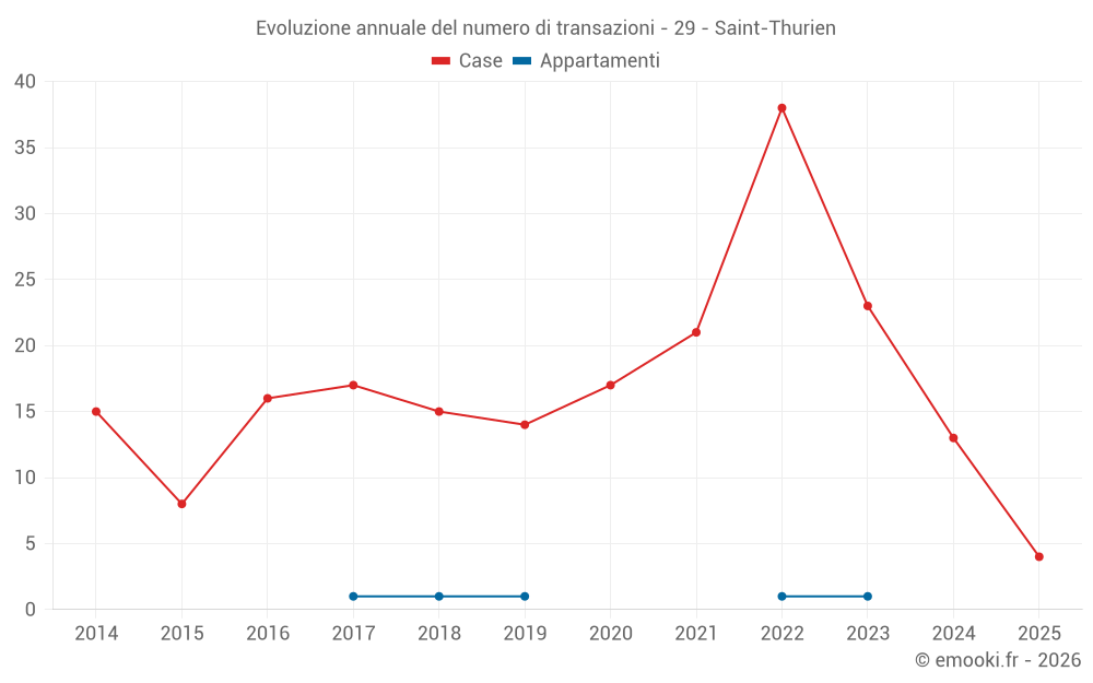 Il prezzo mediano sulle 32 transazioni di case degli ultimi 24 mesi nel comune di Saint-Thurien era di 1 772 € al metro quadrato per un valore patrimoniale mediano di 147 500 €. In questo periodo il 60% delle transazioni era tra 1 086 e 2 274 € al metro quadrato (dal 2° all'8° decile).