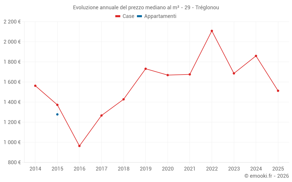 Evoluzione del prezzo mediano al m² degli appartamenti