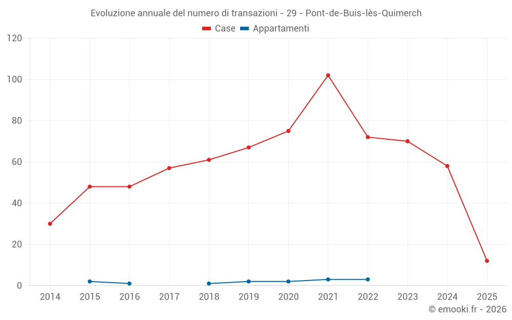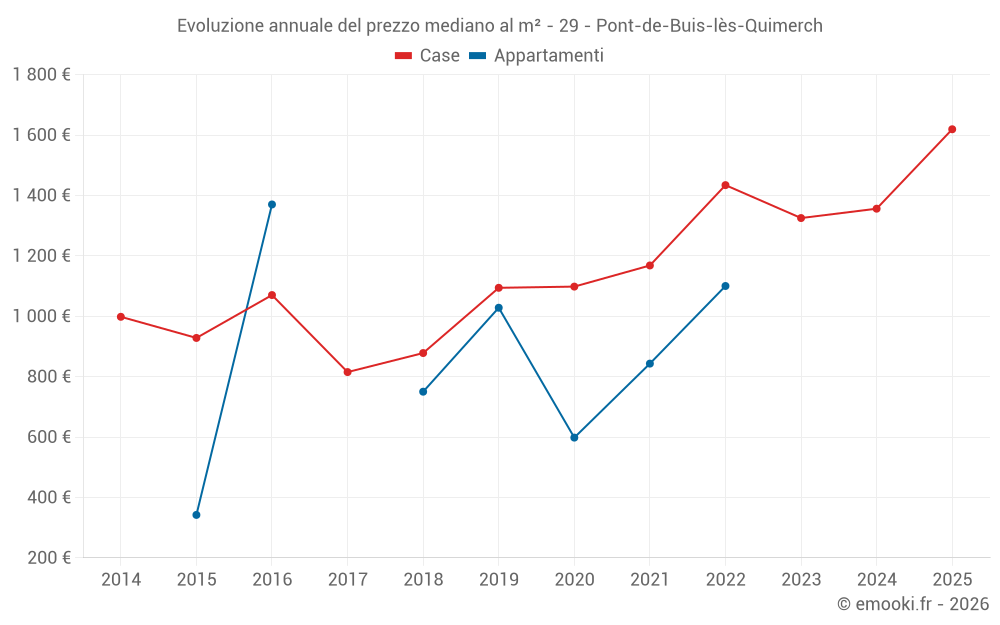 Il prezzo mediano sulle 44 transazioni di case degli ultimi 12 mesi nel comune di Pont-de-Buis-lès-Quimerch era di 1 528 € al metro quadrato per un valore patrimoniale mediano di 112 500 €. In questo periodo il 60% delle transazioni era tra 975 e 2 029 € al metro quadrato (dal 2° all'8° decile).