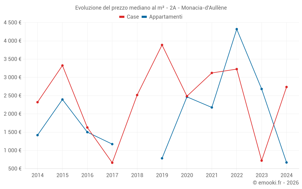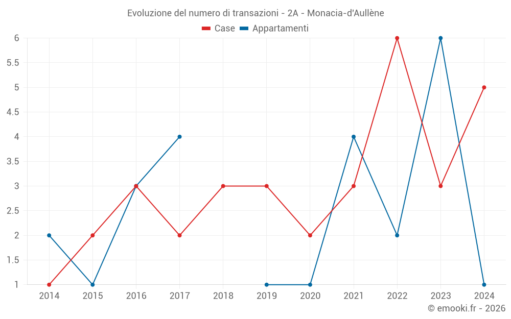 Attenzione, ultimo anno incompleto. Le proiezioni sono effettuate in base alle proporzioni tra semestri dell'anno precedente a livello dipartimentale/nazionale e per tipo di proprietà.