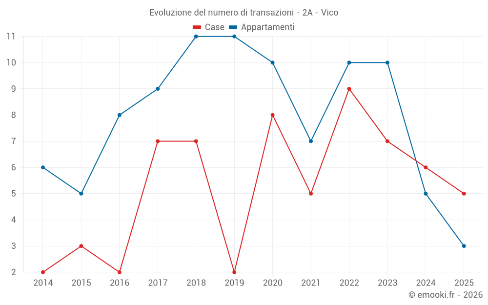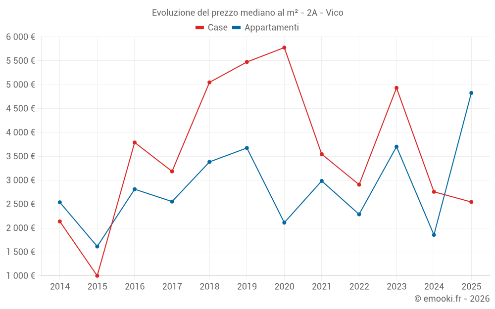 Mappa dei prezzi della casa nel comune di Vico, scegli una sezione per vedere le transazioni per parcella.