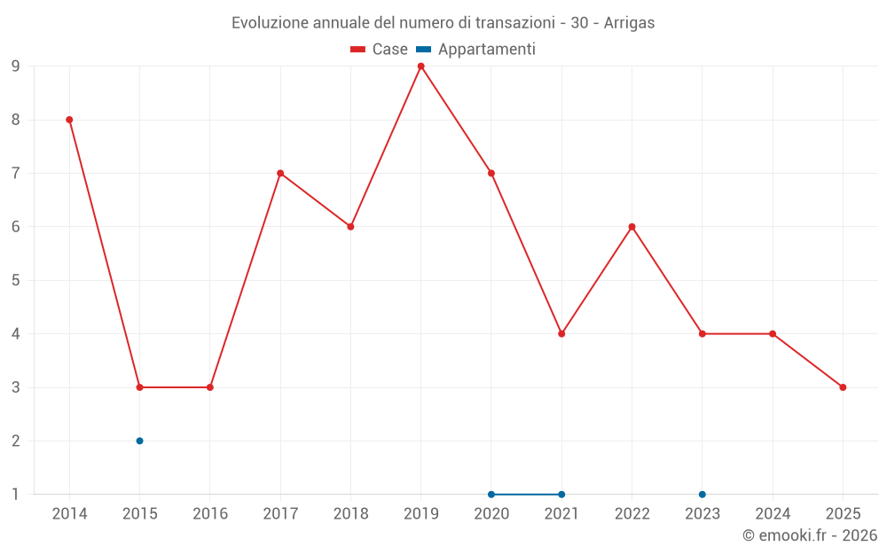 Mappa dei prezzi della casa nel comune di Arrigas, scegli una sezione per vedere le transazioni per parcella.