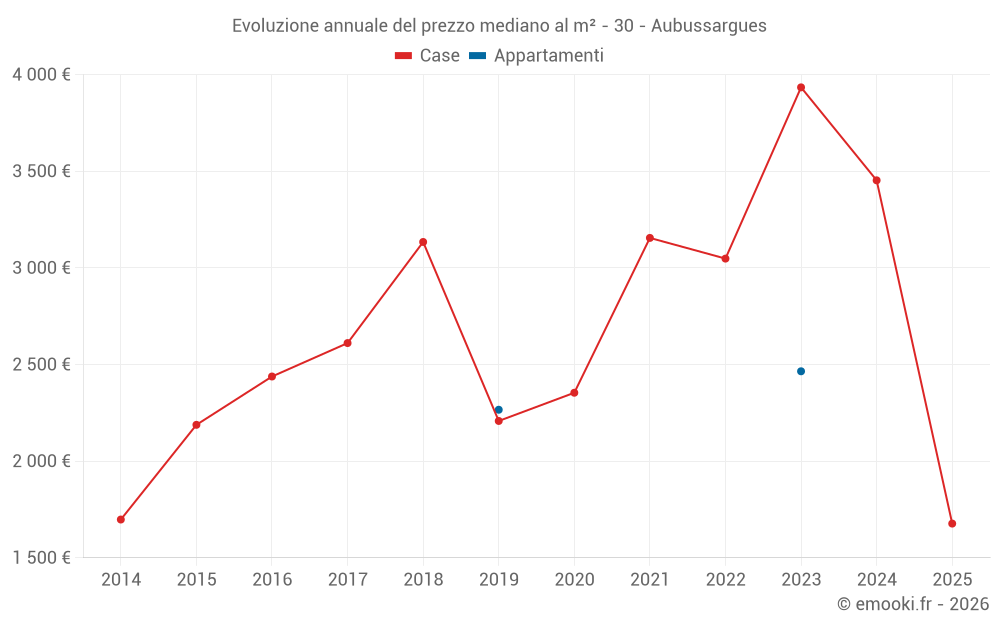 Evoluzione del prezzo mediano al m² degli appartamenti