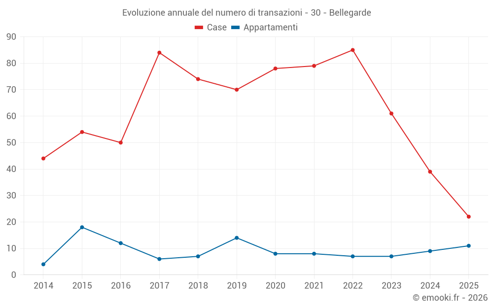 Il prezzo mediano sulle 23 transazioni di appartamenti degli ultimi 24 mesi nel comune di Bellegarde era di 2 225 € al metro quadrato per un valore patrimoniale mediano di 150 000 €. In questo periodo il 60% delle transazioni era tra 1 378 e 2 781 € al metro quadrato (dal 2° all'8° decile).