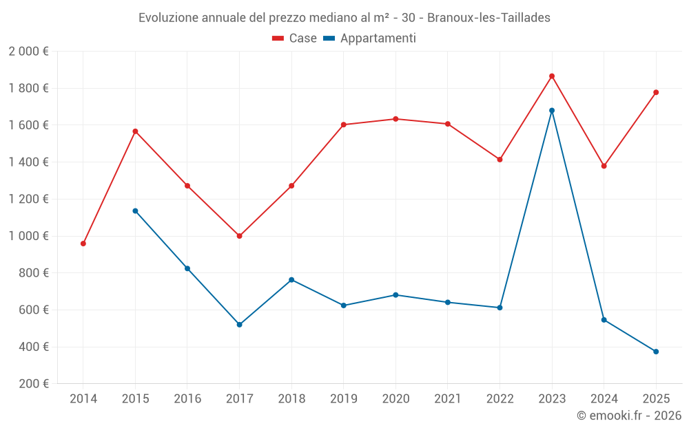 Qual è il prezzo al m2 delle case in Branoux-les-Taillades?