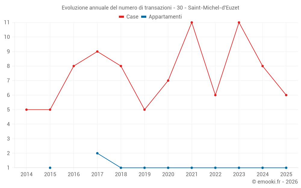 Il prezzo mediano sulle 20 transazioni di case degli ultimi 24 mesi nel comune di Saint-Michel-d'Euzet era di 2 674 € al metro quadrato per un valore patrimoniale mediano di 289 500 €. In questo periodo il 60% delle transazioni era tra 1 737 e 3 309 € al metro quadrato (dal 2° all'8° decile).