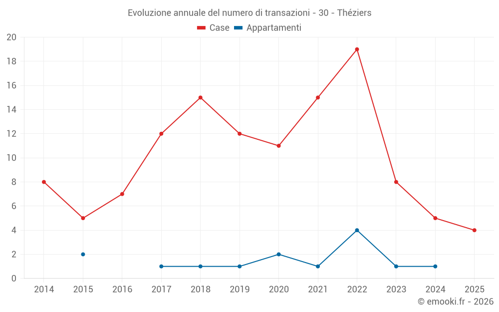 Mappa dei prezzi della casa nel comune di Théziers, scegli una sezione per vedere le transazioni per parcella.