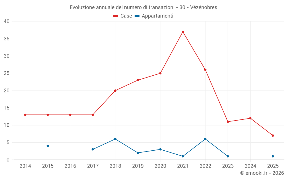 Il prezzo mediano sulle 23 transazioni di case degli ultimi 24 mesi nel comune di Vézénobres era di 2 329 € al metro quadrato per un valore patrimoniale mediano di 250 000 €. In questo periodo il 60% delle transazioni era tra 1 697 e 3 023 € al metro quadrato (dal 2° all'8° decile).