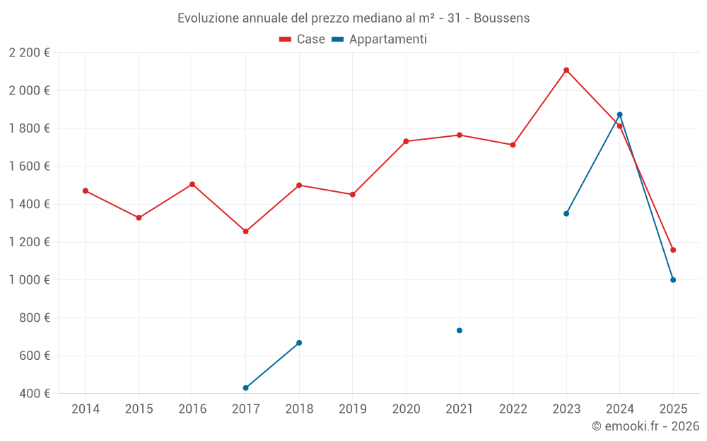 Qual è il prezzo al m2 delle case in Boussens?
