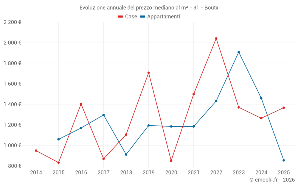 Qual è il prezzo al m2 delle case in Boutx?