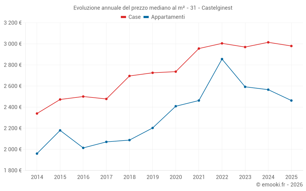Qual è il prezzo al m2 delle case in Castelginest?