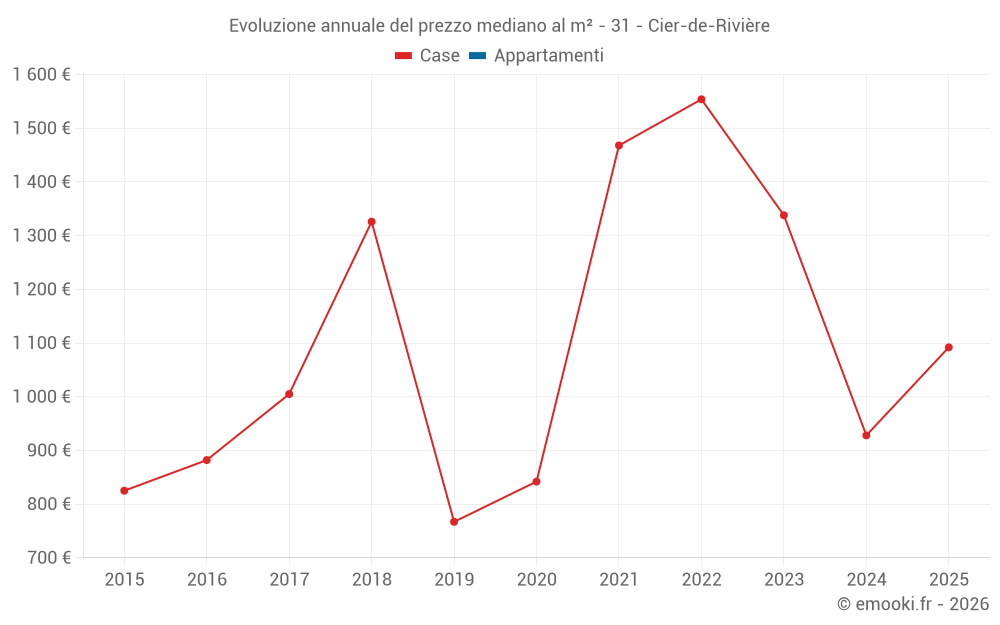 Evoluzione del prezzo mediano al m² degli appartamenti