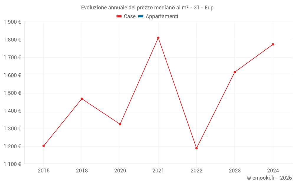 Evoluzione del prezzo mediano al m² degli appartamenti