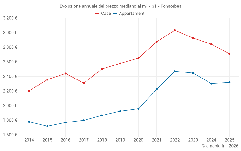 Qual è il prezzo al m2 delle case in Fonsorbes?