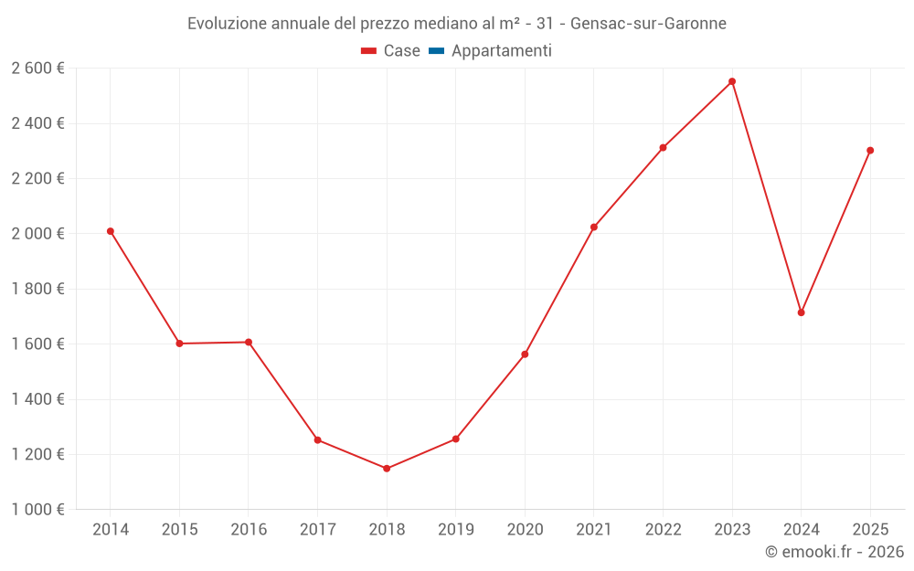 Evoluzione del prezzo mediano al m² degli appartamenti