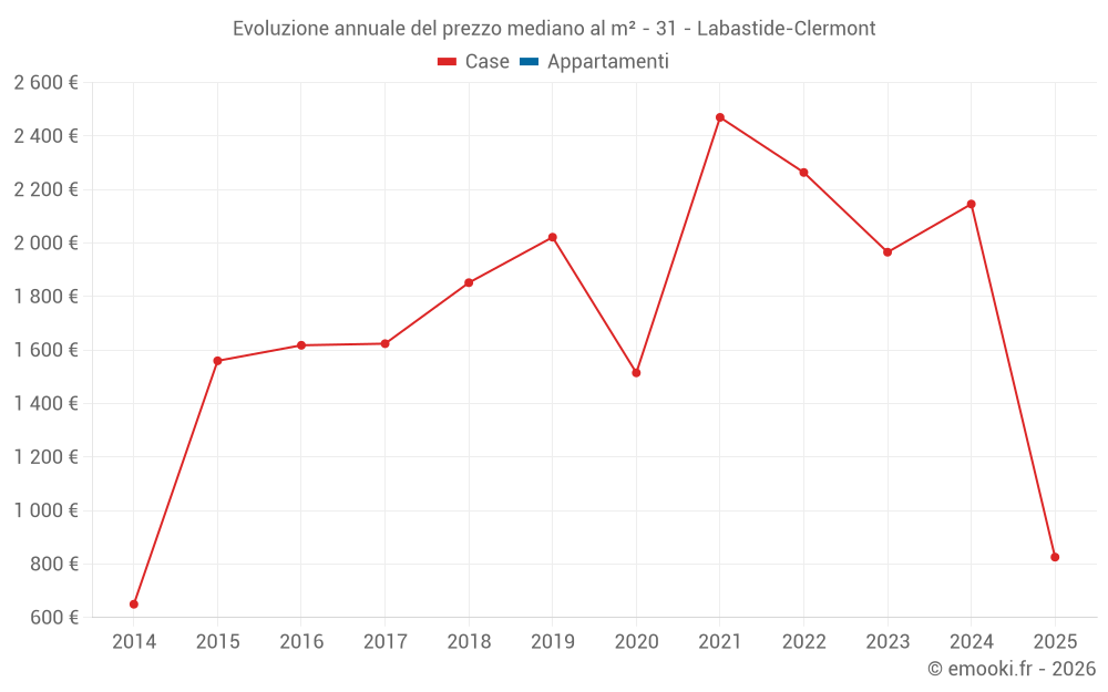 Evoluzione del prezzo mediano al m² degli appartamenti