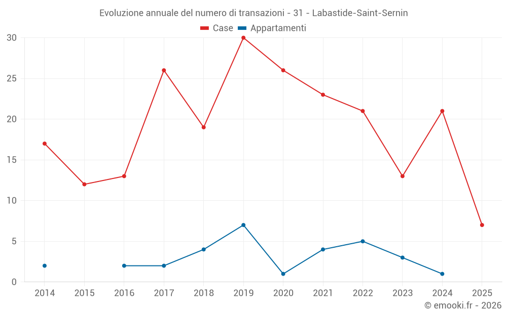 Il prezzo mediano sulle 18 transazioni di case degli ultimi 12 mesi nel comune di Labastide-Saint-Sernin era di 2 645 € al metro quadrato per un valore patrimoniale mediano di 254 675 €. In questo periodo il 60% delle transazioni era tra 2 257 e 2 959 € al metro quadrato (dal 2° all'8° decile).
