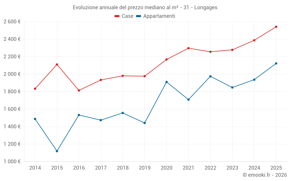 Qual è il prezzo al m2 delle case in Longages?