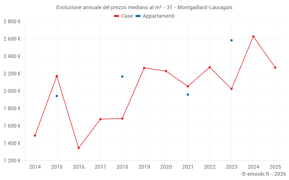 Evoluzione del prezzo mediano al m² degli appartamenti