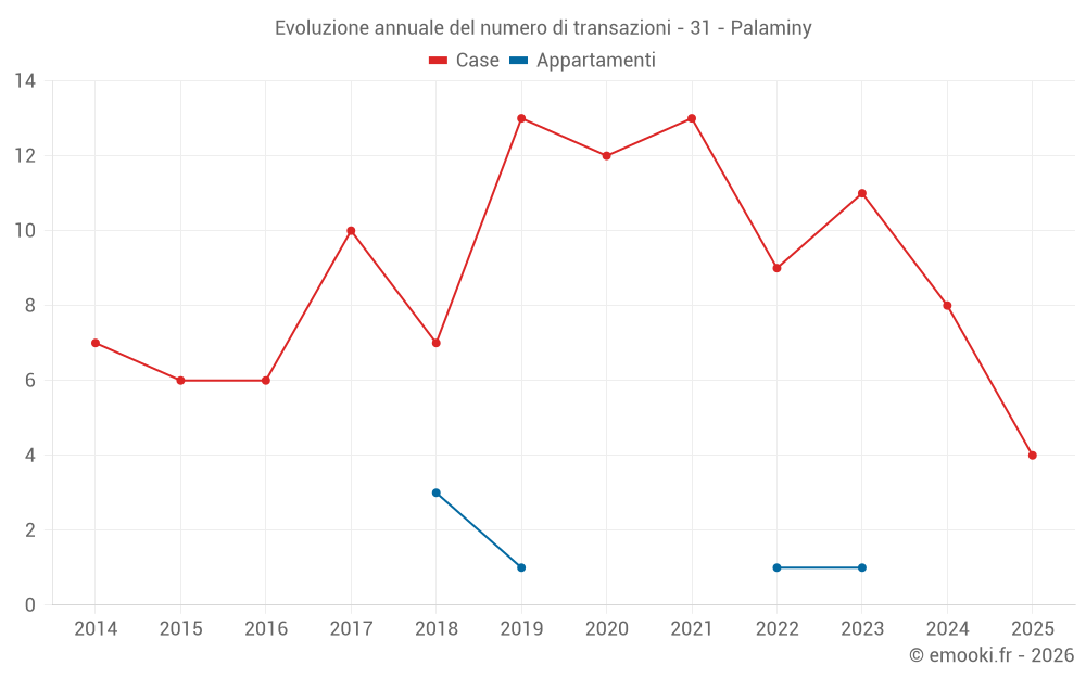 Il prezzo mediano sulle 17 transazioni di case degli ultimi 24 mesi nel comune di Palaminy era di 1 966 € al metro quadrato per un valore patrimoniale mediano di 149 000 €. In questo periodo il 60% delle transazioni era tra 1 054 e 2 206 € al metro quadrato (dal 2° all'8° decile).